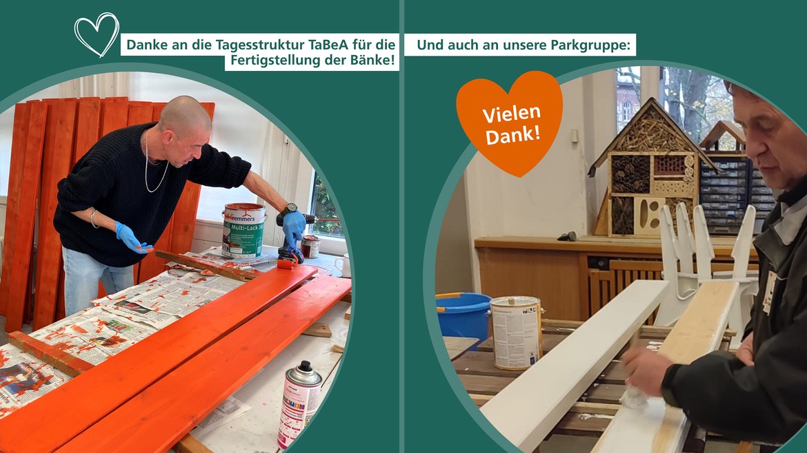 Sie haben die Bänke gebaut, lackiert und gestaltet und damit maßgeblich zum Gelingen der Aktion beigetragen.